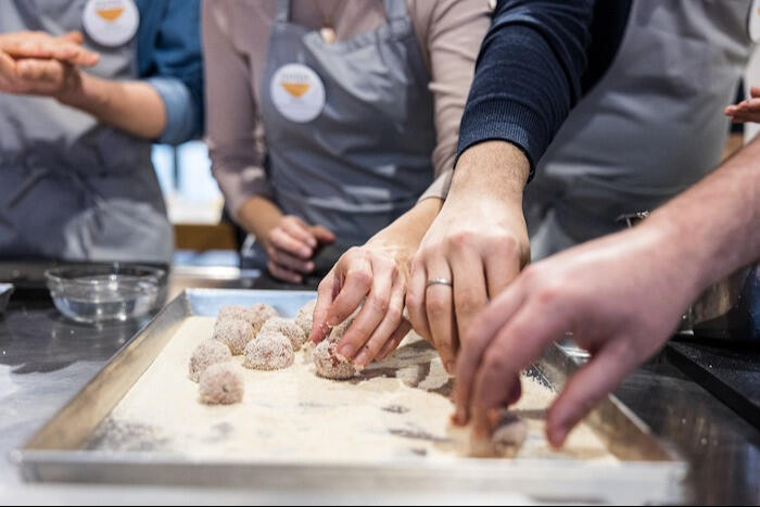 • Anche nelle classi di gruppo fino a 20 partecipanti, garantiamo un’attenzione individuale eccezionale grazie alla presenza di due chef e tre assistenti. Questo significa che ogni partecipante riceve un supporto costante durante tutta l'esperienza.